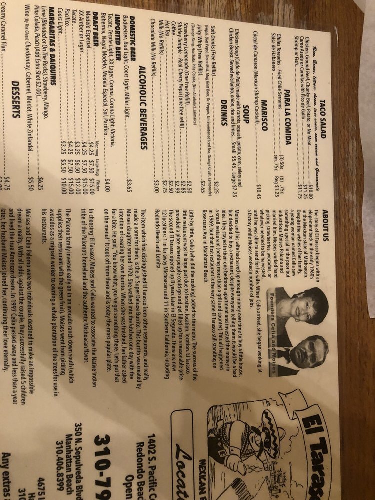 El Tarasco Mexican Food (South Redondo Beach) Menu